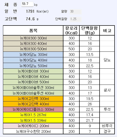 욕창 식이계산